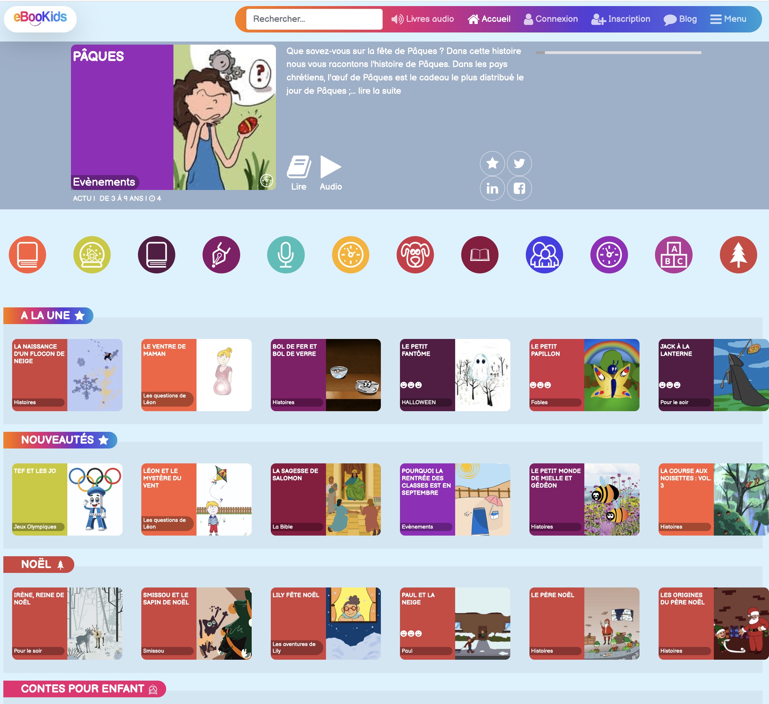 EBooKids est une plateforme en ligne proposant des histoires et contenus pour enfants, sous forme de livres numérique. Refonte du site, optimisation des performances.