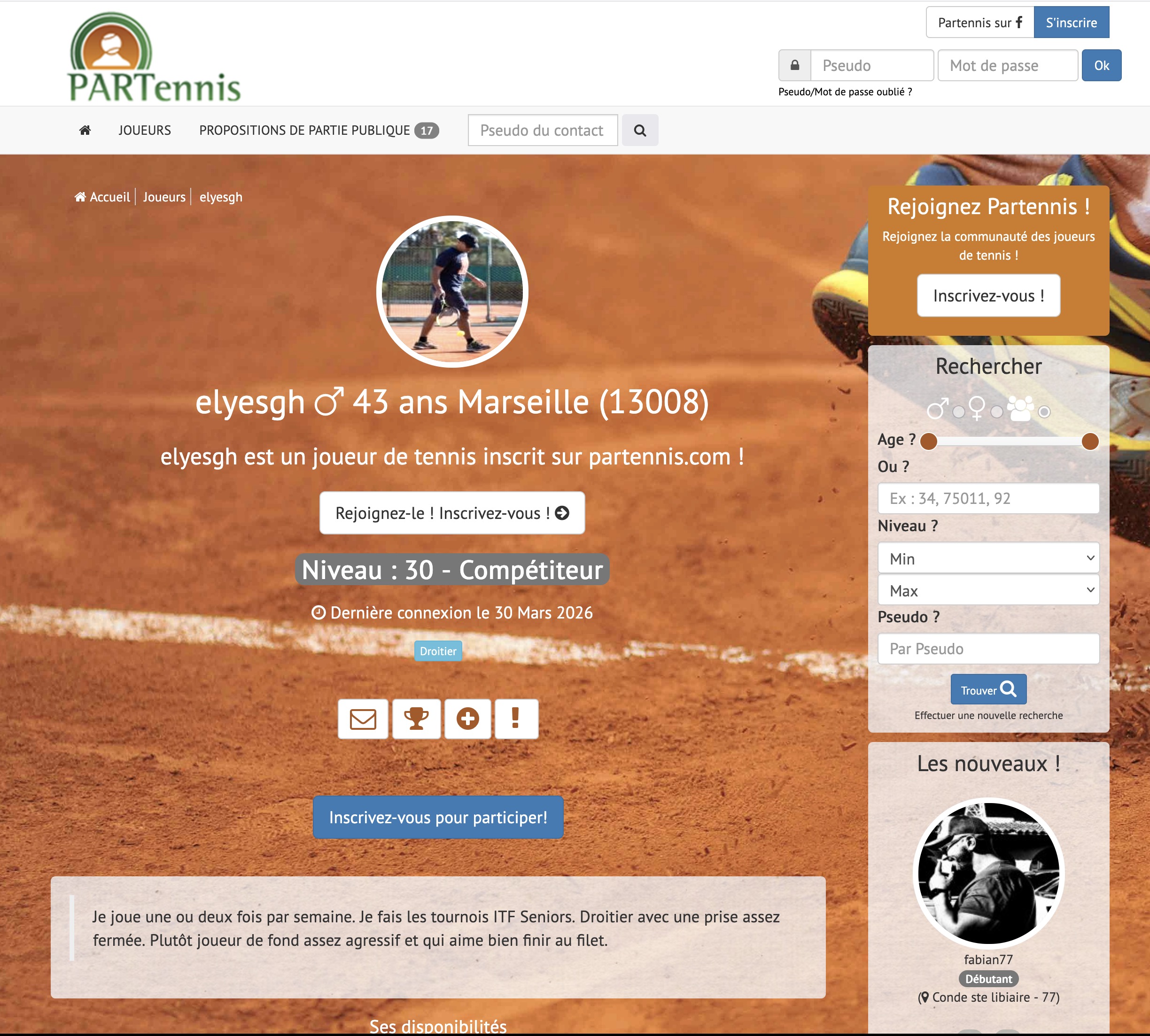 Le site Partennis.com est une plateforme en ligne dédiée aux joueurs de tennis qui souhaitent trouver des partenaires pour jouer.